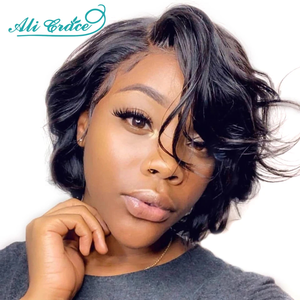 Amazon Com Ali Grace Human Hair Short Bob Wigs Glueless Pre Plucked Bleached Knots Lace Closure Full Wig 10a Brazilian Virgin Natural Soft Hair For Black Women 150 Density With Baby Hair